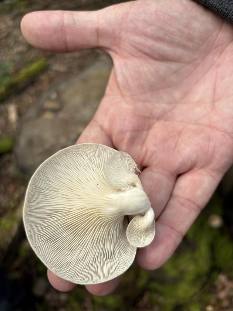 Auch Seitlinge bzw. Austernpilze sind heute im Buchenwald zu finden – viele kennen diese Pilze aus dem Supermarkt. Solche essbaren Arten können auch gut kultiviert werden – mehr dazu auf unserem Pilzanbau-WE im März des kommenden Jahres.