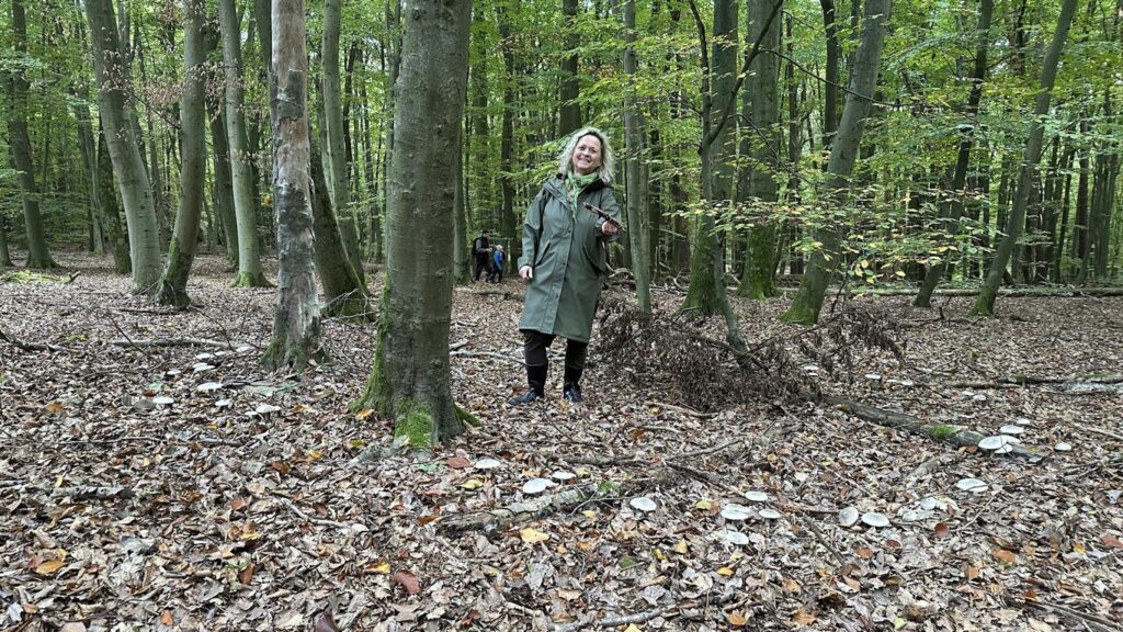 Moni in einem Hexenring von Nebelkappen – der Herbst hält voll Einzug im Pilzwald.