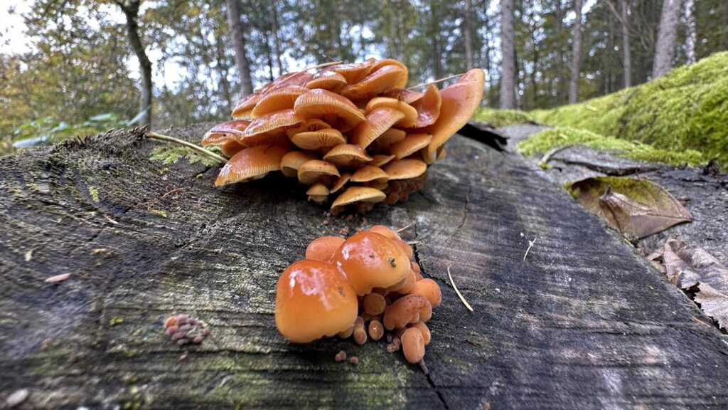In angenehmer Runde ging es mit Förster Andreas und Christina ( Chefin im Stadtwaldhaus ) sowie Teilnehmern aus der Umgebung auf Erkundungstour. Taritara – die Winterpilze sind auch schon da 🙂 – hier der Samtfußrübling alias „Enoki“