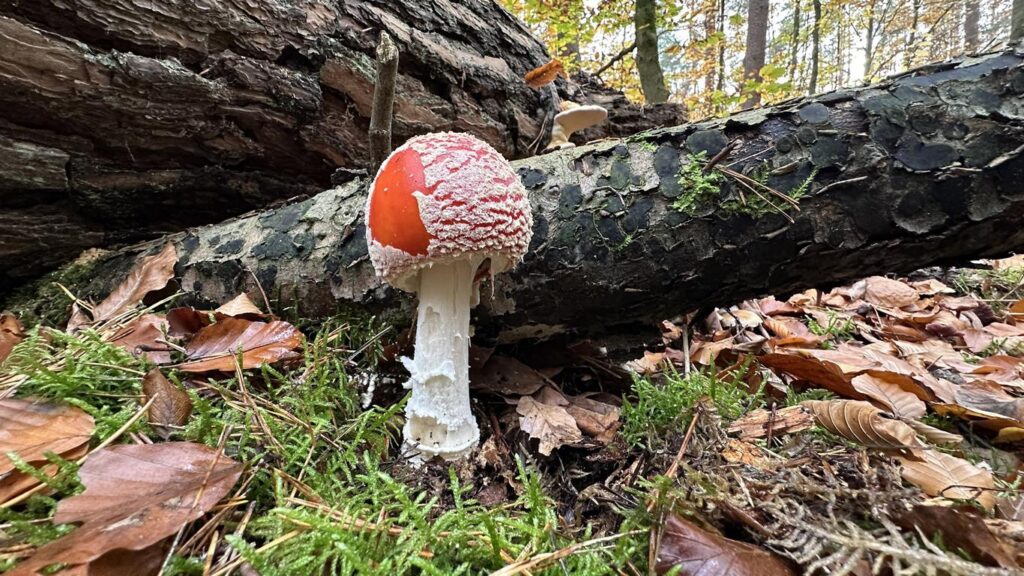 Ist er nicht wunderhübsch? Dieses Fliegenpilzmodell zeigte sich uns zusammen mit vielen weiteren Vertretern seiner Art im herbstlichen Wald.