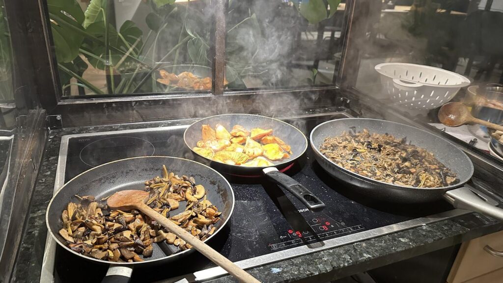 Viele verschiedene Pilzchen säumten unseren Weg – die essbaren Arten wanderten ins Sammelkörbchen für das abendliche Kochevent.