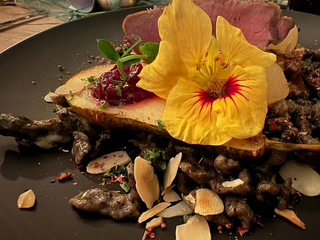 Der Hauptgang – die Spätzle waren leicht düster – der Teig war mit Herbsttrompeten gefärbt.