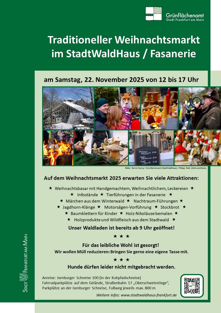 Am Samstag, 22. November 2025, findet im und ums StadtWaldHaus der alljährliche Weihnachtsmarkt statt.